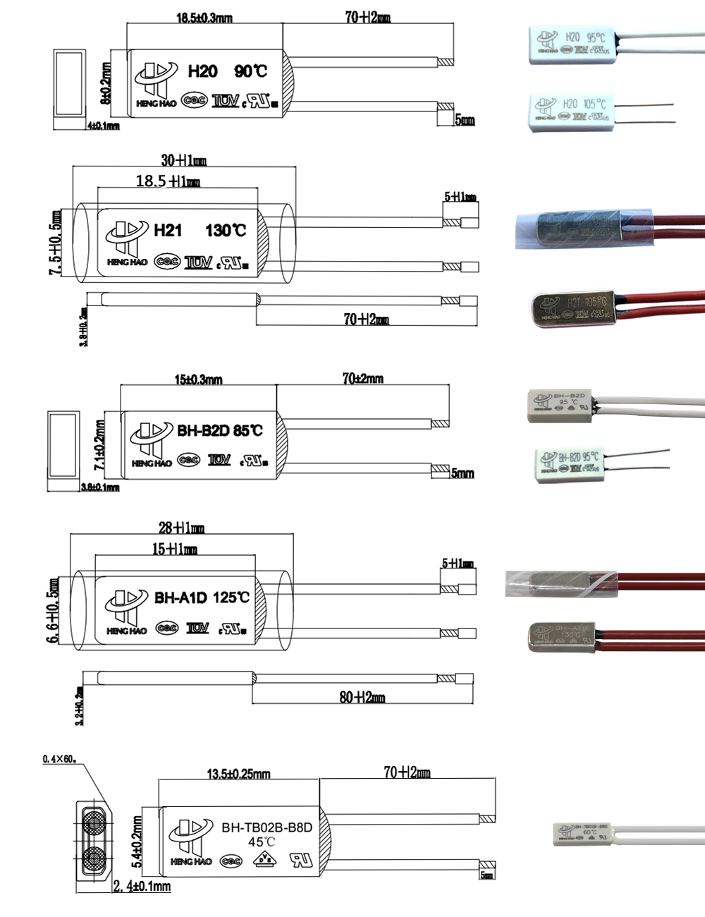 BH-TB02B-B8D Thermal switch,thermostat,Thermal protector
